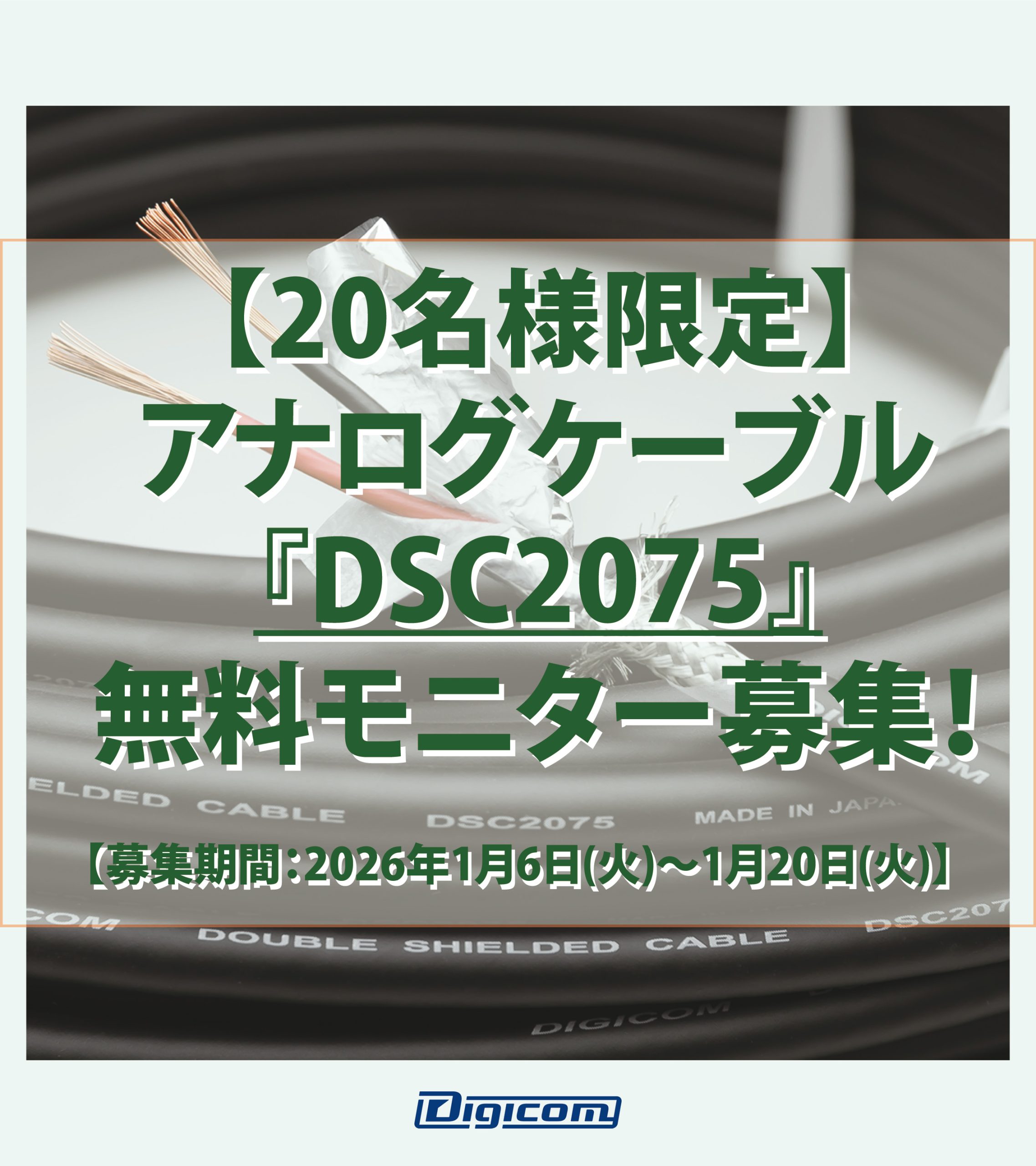 新製品「2重シールドアナログケーブル DSC 2075」を実際にご使用いただける方を20名様限定で募集いたします。