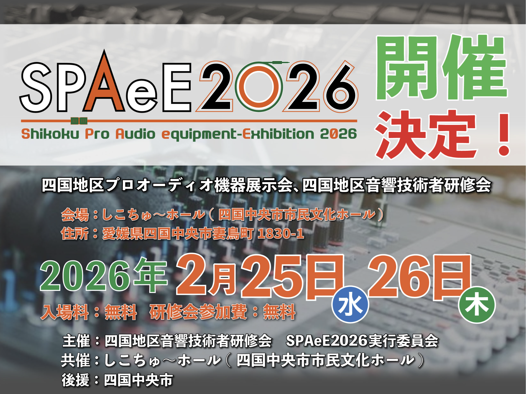 令和8年2月25日(水)、26日(木)しこちゅ~ホール(四国中央市市民文化ホール)で開催されます、「SPAeE2026」に出展いたします。